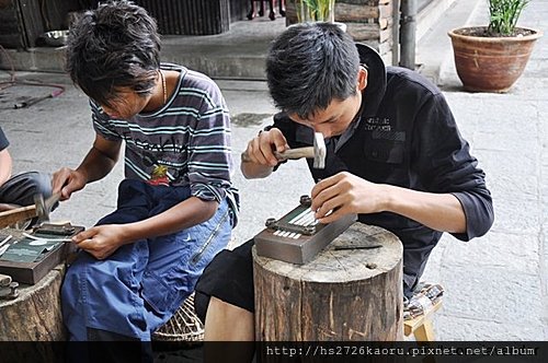 每家銀飾店門前必有幾位銀匠埋頭工作著